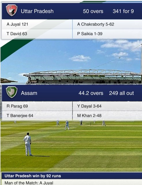 We won the toss and decided that our best chance against the strong Uttar Pradesh was to put them into bat and try and restrict them to a score that we could chase.