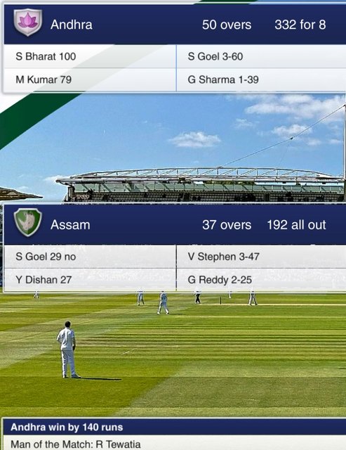 We came a cropper in our second OD match, as Andhra put up a big score for us to chase.